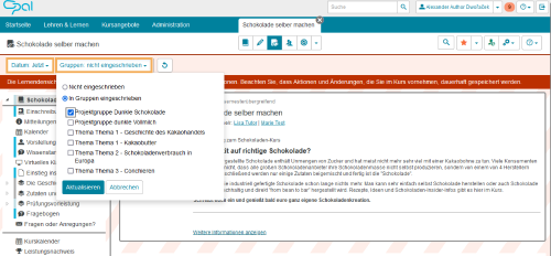 Nutzen Sie die Einstelloptionen, um die Kursansicht zu einem zukünftigen Zeitpunkt oder für eine konkrete Gruppe zu simulieren. Wählen Sie den gewünschten Filter und aktualisieren Sie die Ansicht.