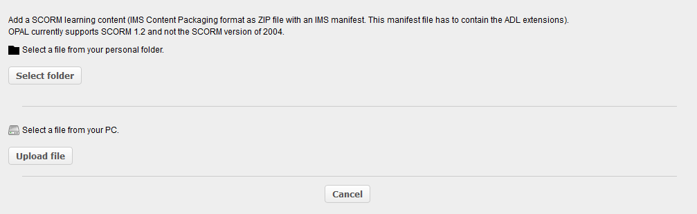 Add a course element SCORM | ||||||||||||||||||||||||
