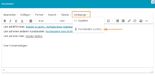 1 | Öffnen Sie im Texteditor den Tab Werkzeuge. Wählen Sie hier den Eintrag Formeleditor (LaTeX). |